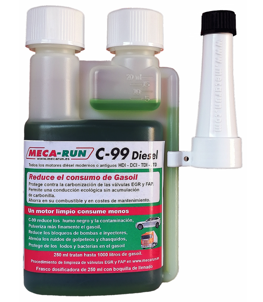 La función antifricción C99 Diésel es una ventaja adicional y contribuye a quemar al máximo su combustible y reducir el efecto contaminante (ver análisis en banco de control certificado).