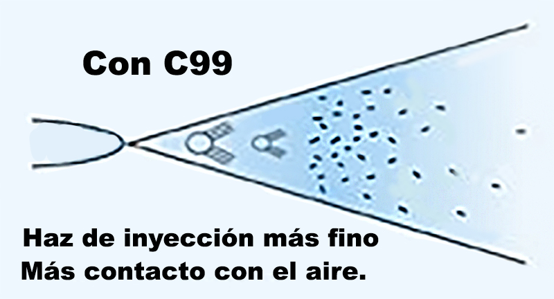 C99 permite una mejor nebulización del combustible, lo que genera más superficie en contacto con el oxígeno y asegura una mejor combustión.